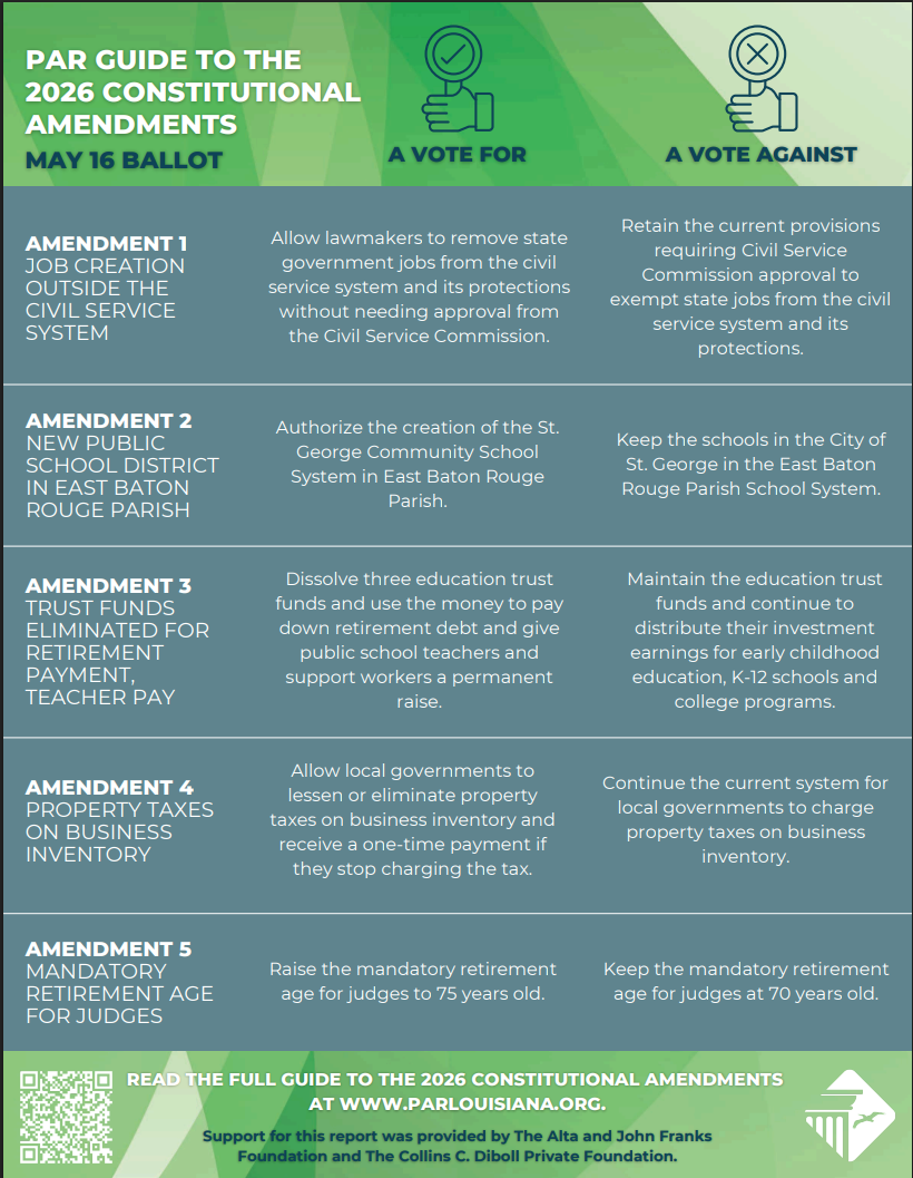 PAR Louisiana puts out an Excellent Guide to the Constitutional Amendments Here are there guides for […]